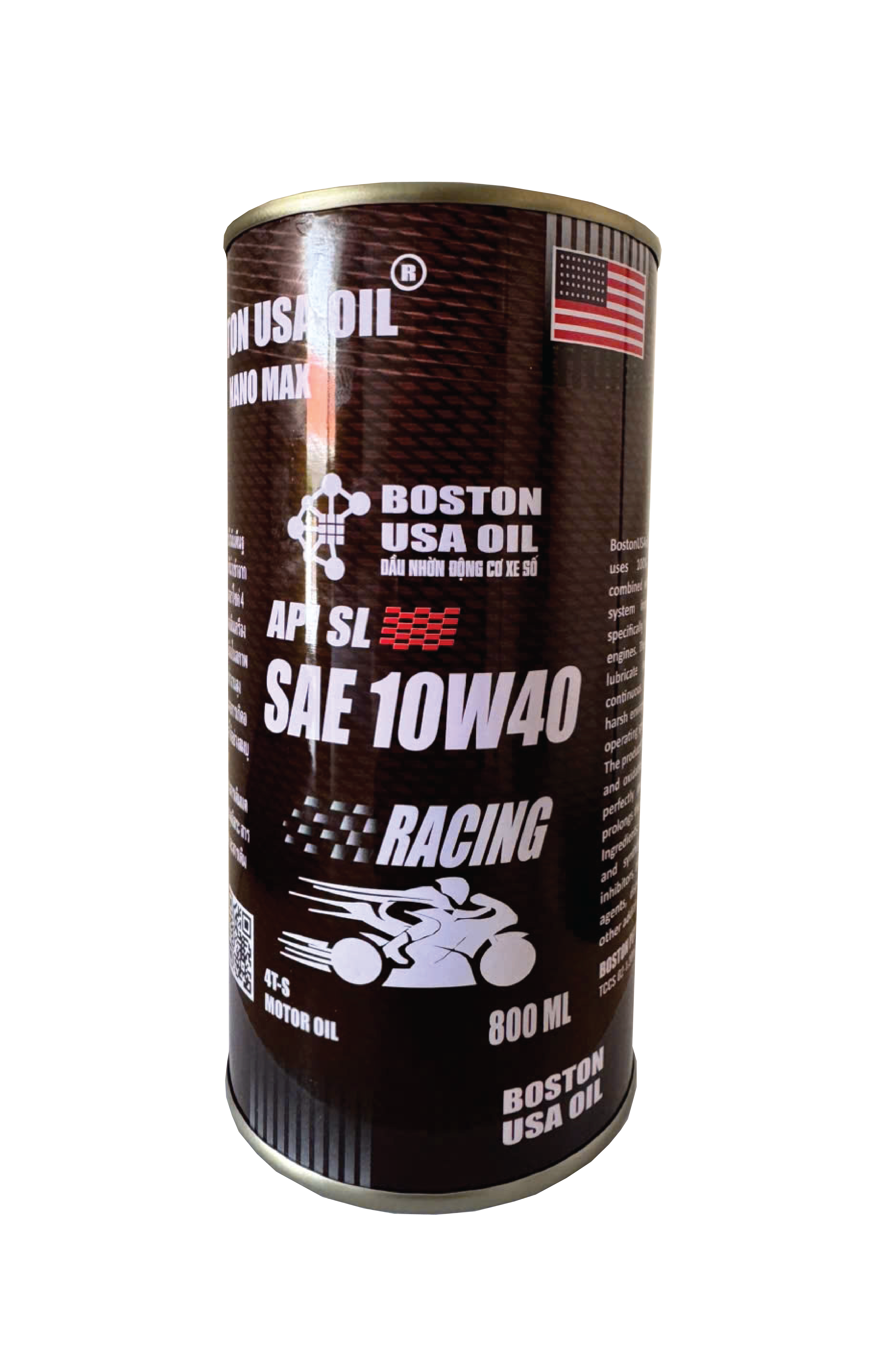 Dầu BostonUSAoil API SL SAE 10W40 sử dụng 100% dầu gốc nhập khẩu, kết hợp với hệ phụ gia tổng hợp nhập khẩu từ Mỹ chuyên dùng cho động cơ xe máy 4 thì. Sản phẩm được thiết kế bôi trơn cho động cơ xe số trong những điều kiện làm việc liên tục ở môi trường khắc nghiệt, tải trọng cao, tốc độ vận hành cao.